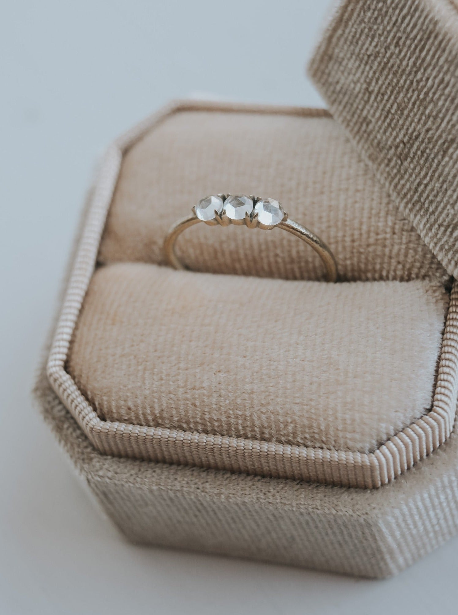 Secrets of a Rose cut - Rose cut stones are known for their unique brightness and fire, however they are not like ordinary round cuts that sparkle most when viewed from above. The beauty of a rose cut is that they sparkle at an angle as the light refracts through the facets. Rose cuts are known as the 'dancing stone' because of the way that they twinkle on a ring as the hand moves. When viewed directly from above the facets can seem to disappear, but tilt them ever so slightly and they burst into flame. I hope that this helps to familiarise yourself with the characteristics of a rose cut stone, and as such you will appreciate their individual light play when receiving them.
